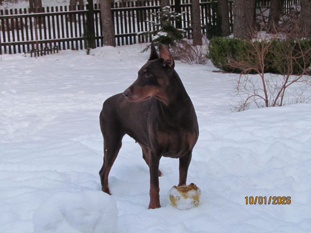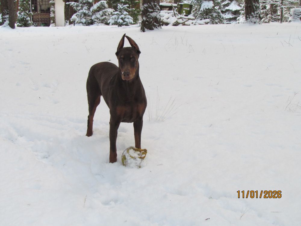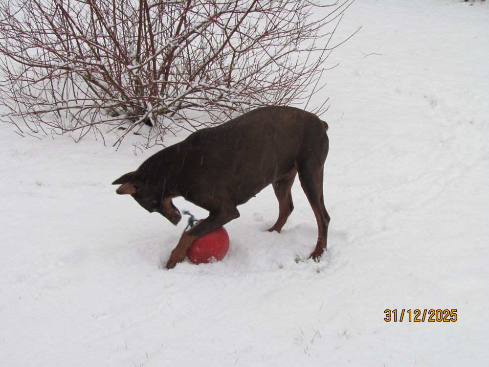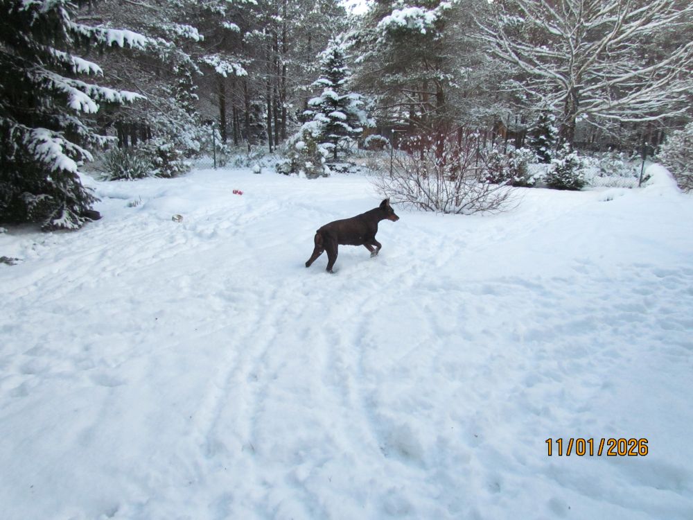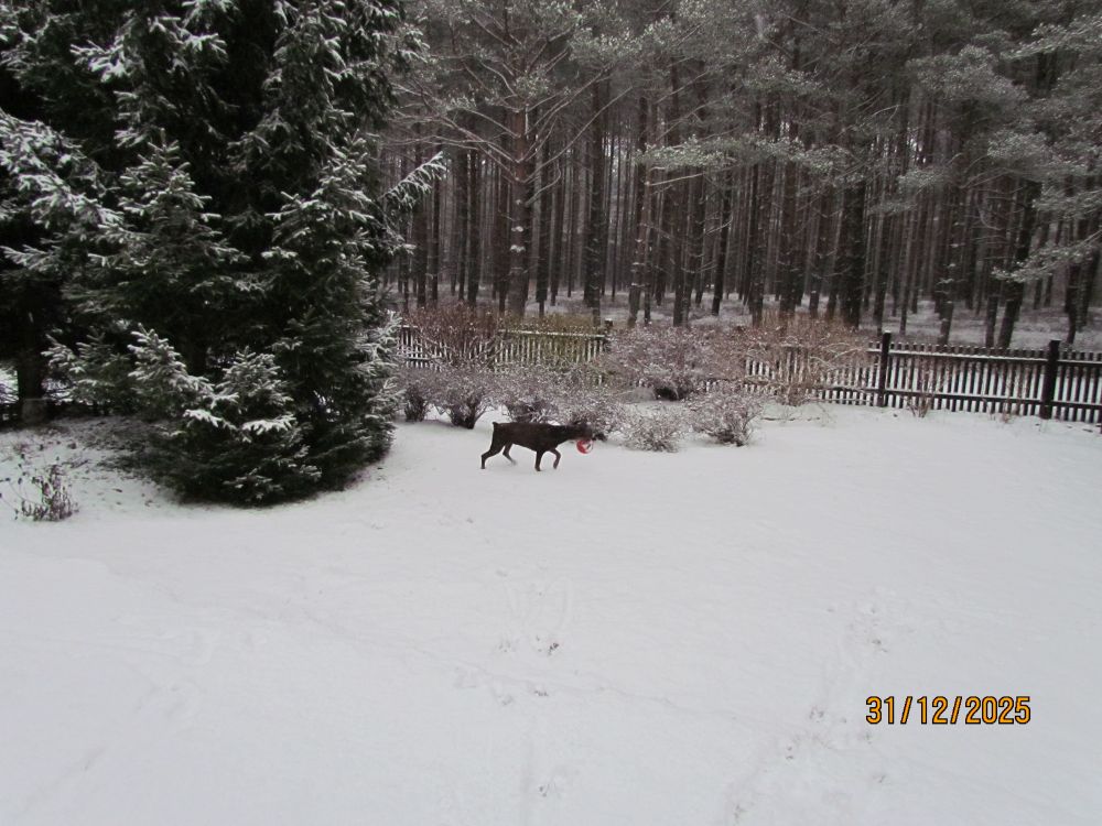 Dla Zuli, ani śnieg, ani mróz, nie stanowią żadnego problemu. Najważniejsze, że dalej może ganiać za wiewiórkami i ptakami /na szczęście tylko ganiać!/. W śniegu udało się znaleźć ukochane piłeczki, bez których nie ma zabawy.